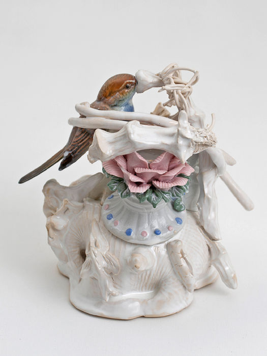 Sa dernière série REMIX répond à la thématique du Parcours en jouant avec les traditions populaires à partir de bibelots brisés dont il retravaille les fêlures pour leur redonner une nouvelle vie à travers des formes néobaroques. Il mixe clins d’œil réjouissants, réminiscences de l’histoire de l’art, souvenirs d’enfance, contes et légendes